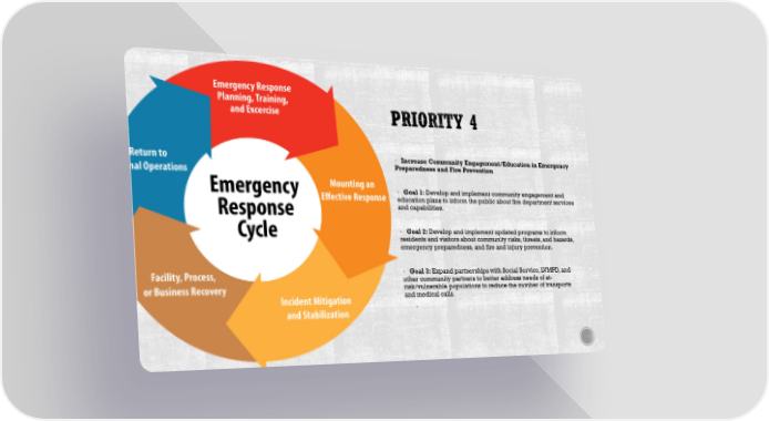 PRIORITY 4 ▪ Increase Community Engagement/Education in Emergency Preparedness and Fire Prevention ▪ Goal 1: Develop and implement community engagement and education plans to inform the public about fire department services and capabilities. ▪ Goal 2: Develop and implement updated programs to inform residents and visitors about community risks, threats, and hazards, emergency preparedness, and fire and injury prevention. ▪ Goal 3: Expand partnerships with Social Service, LVMPD, and other community partners to better address needs of at- risk/vulnerable populations to reduce the number of transports and medical calls. ▪